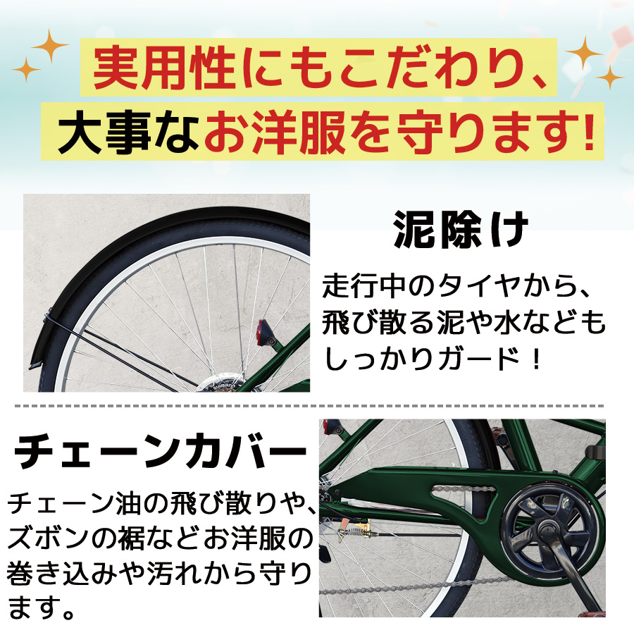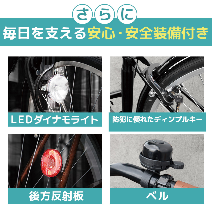 ■付属品:前カゴ・LEDダイナモライト・サークル錠・簡易工具・取扱説明書