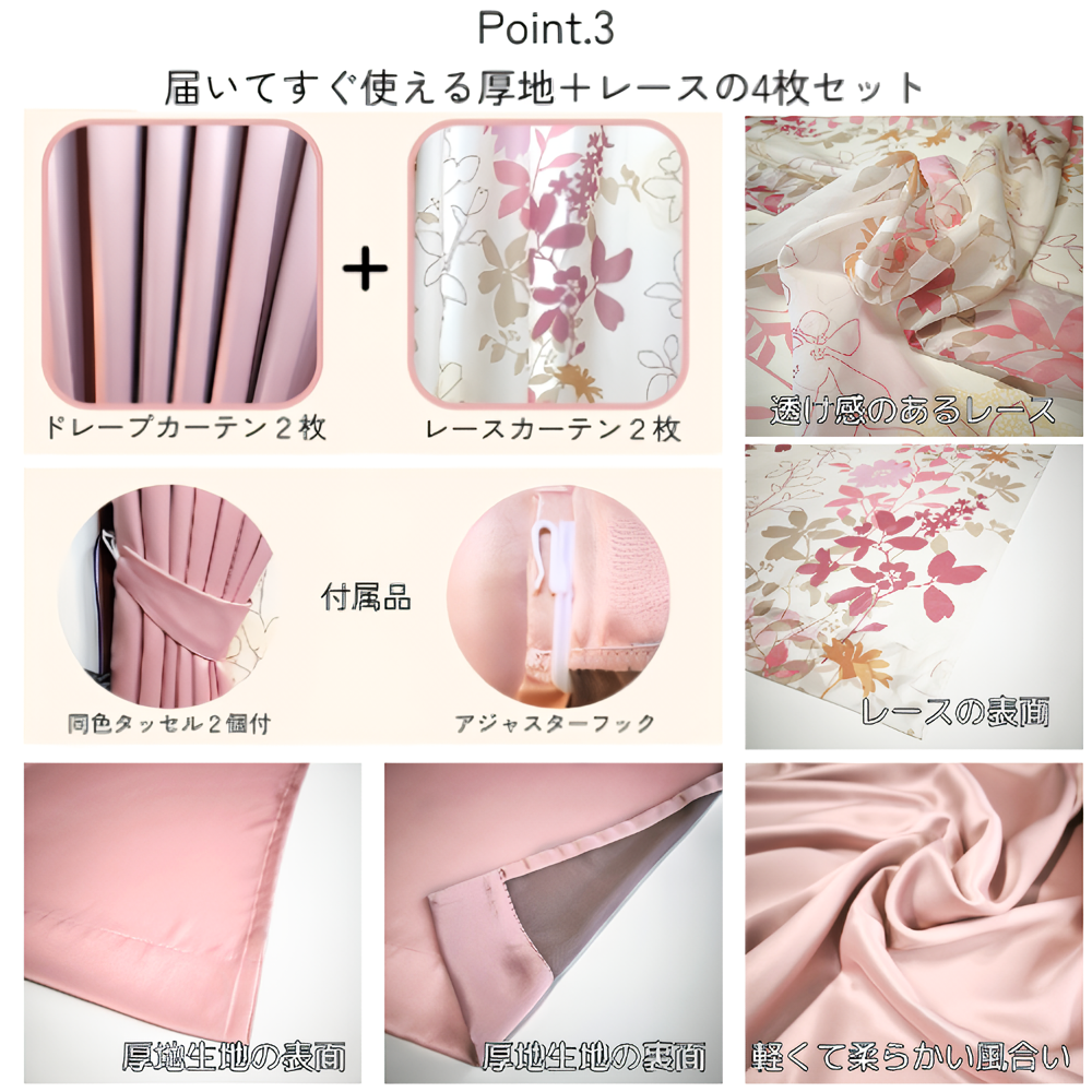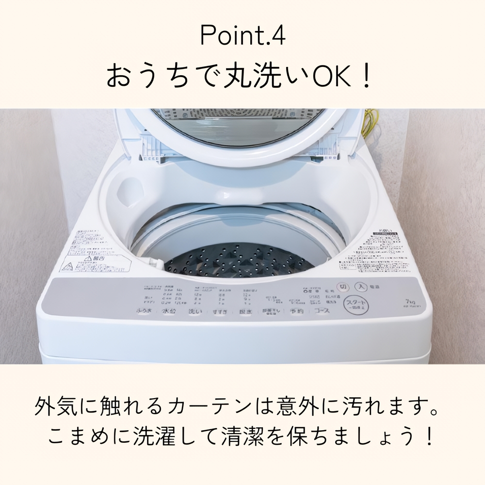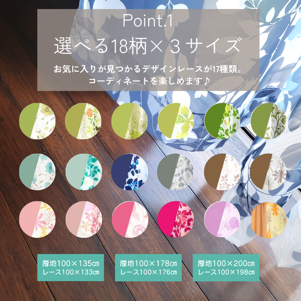 レースカーテンの丈は厚地の−2cmです。