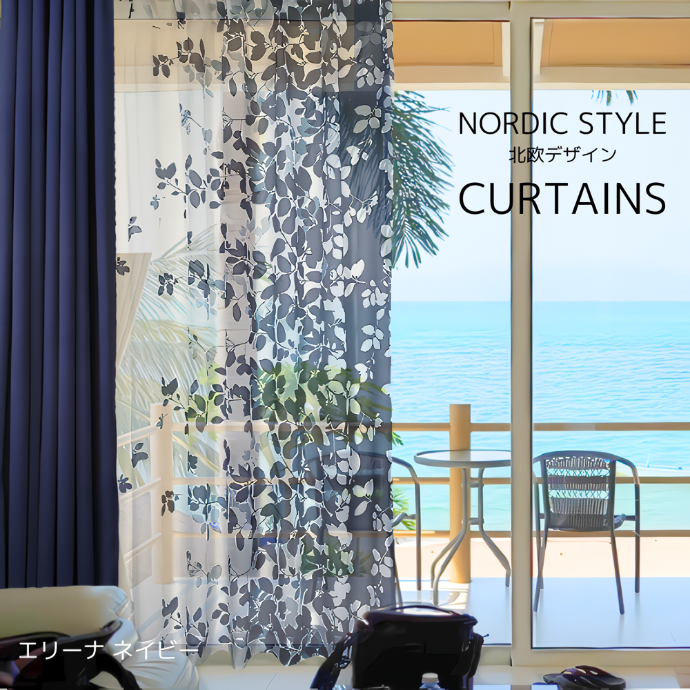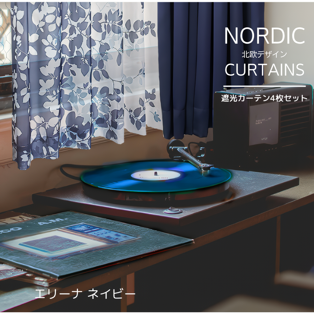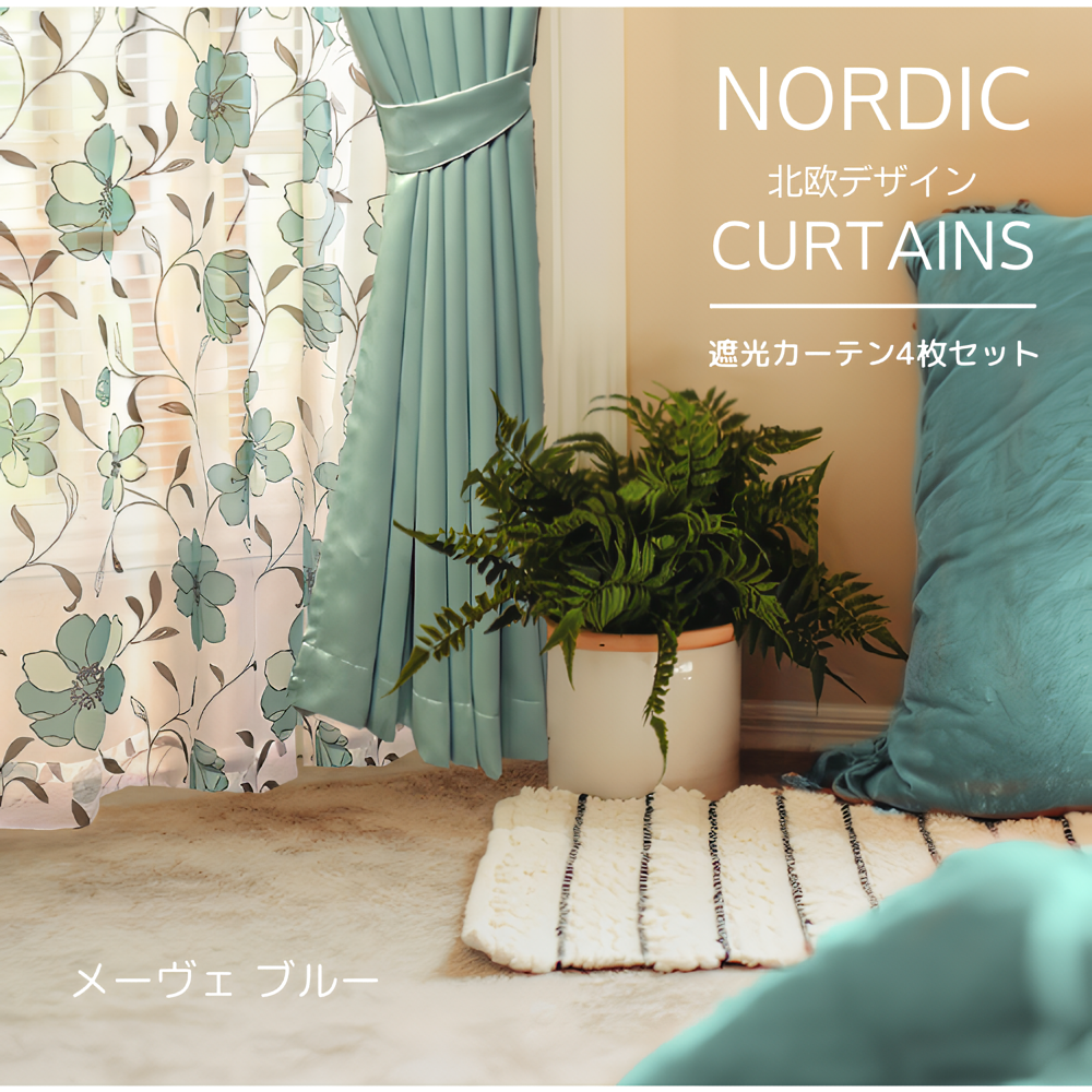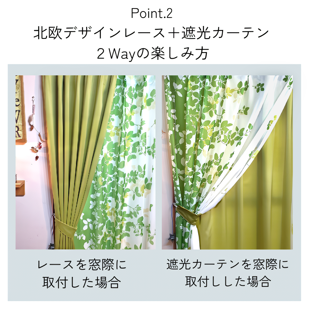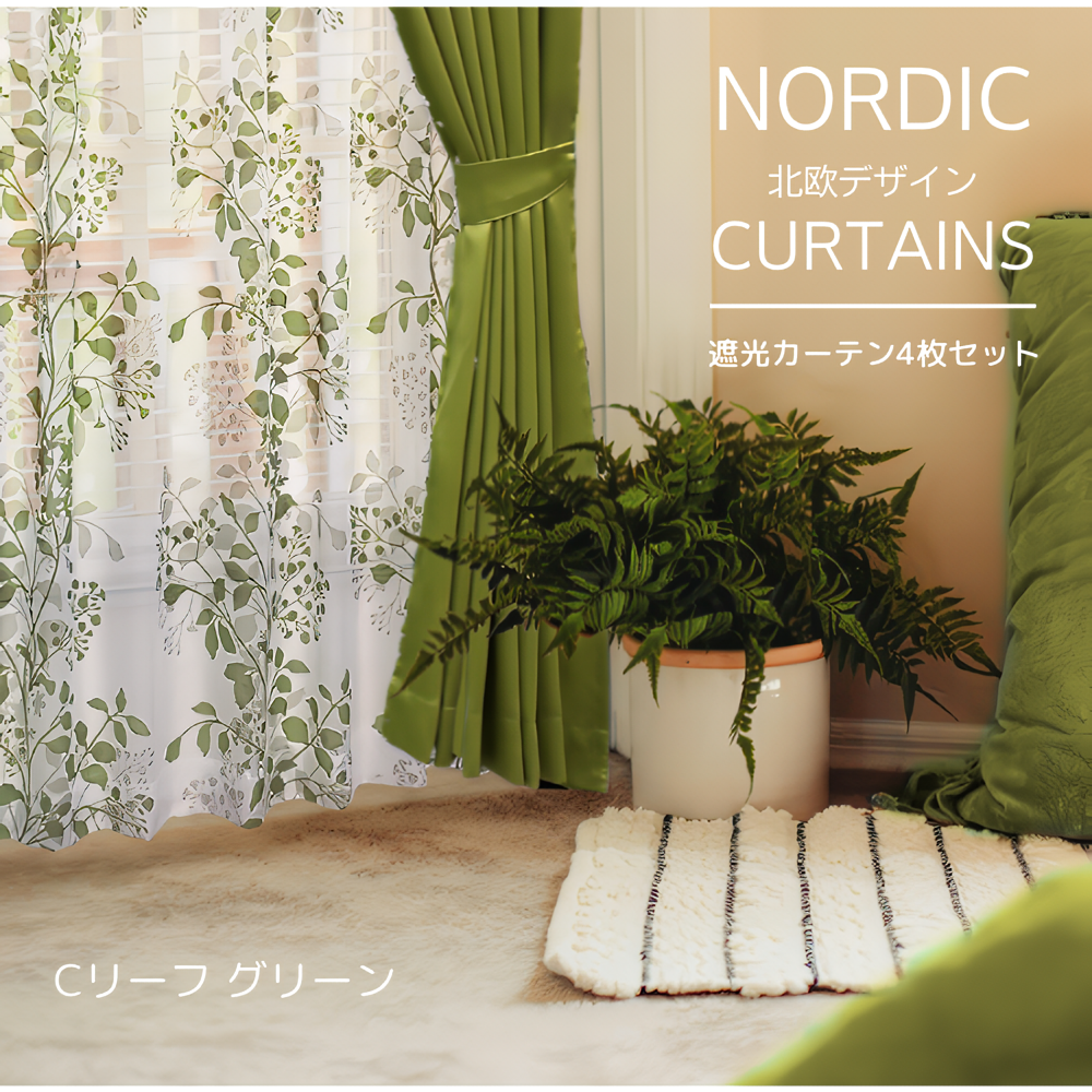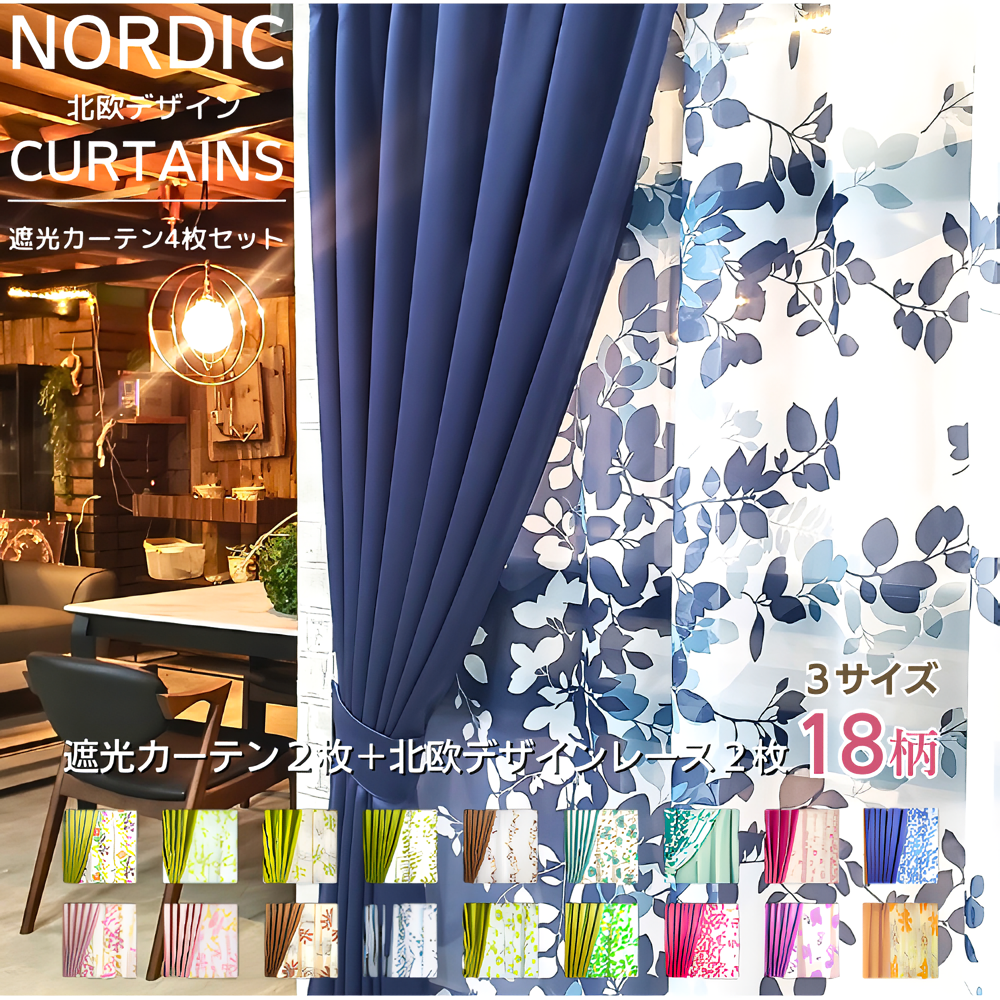 遮光性2枚+北欧風レース2枚の計4枚セットカーテン