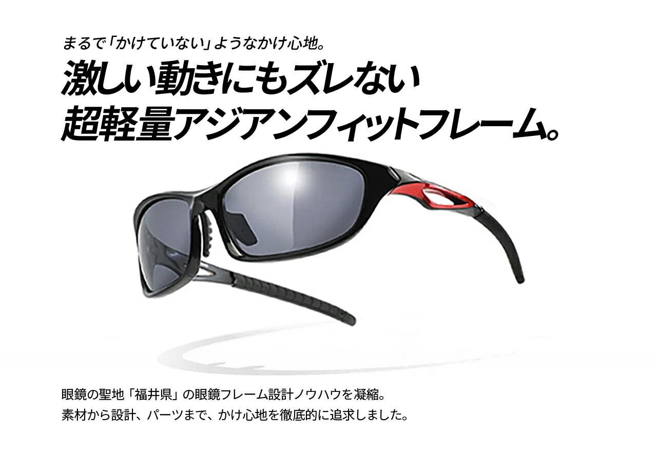 日本人の骨格にフィットする軽量スポーツサングラス スポーツウェアにあわせやすいフレームカラー全4色