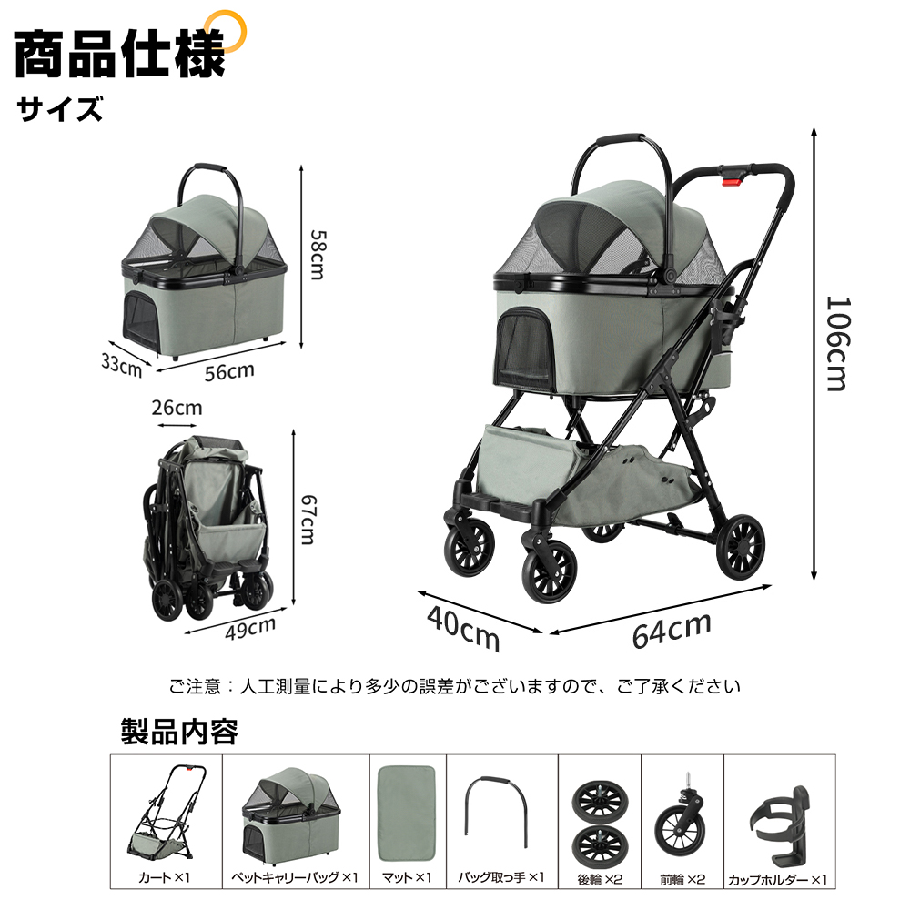 【商品説明】ペットカート 犬カート ペットバギー 分離型 多頭 小型犬 中型犬 折りたたみ 軽量 分離式