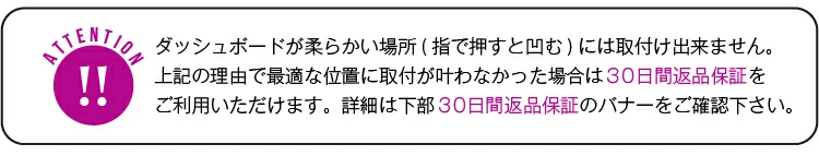 注意:ダッシュボードが柔らかい場所(指で押すと凹む)には取付け出来ません。