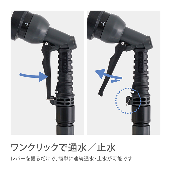 散水ノズルは手元で止水と通水がワンクリックで操作できます。