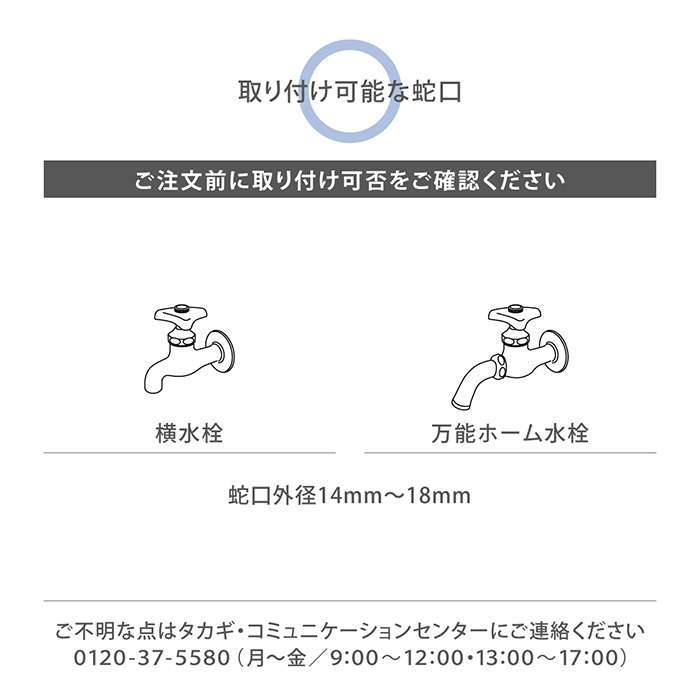 ホースは塩化ビニル樹脂製のためホースを通した水に臭いがつく場合があります。