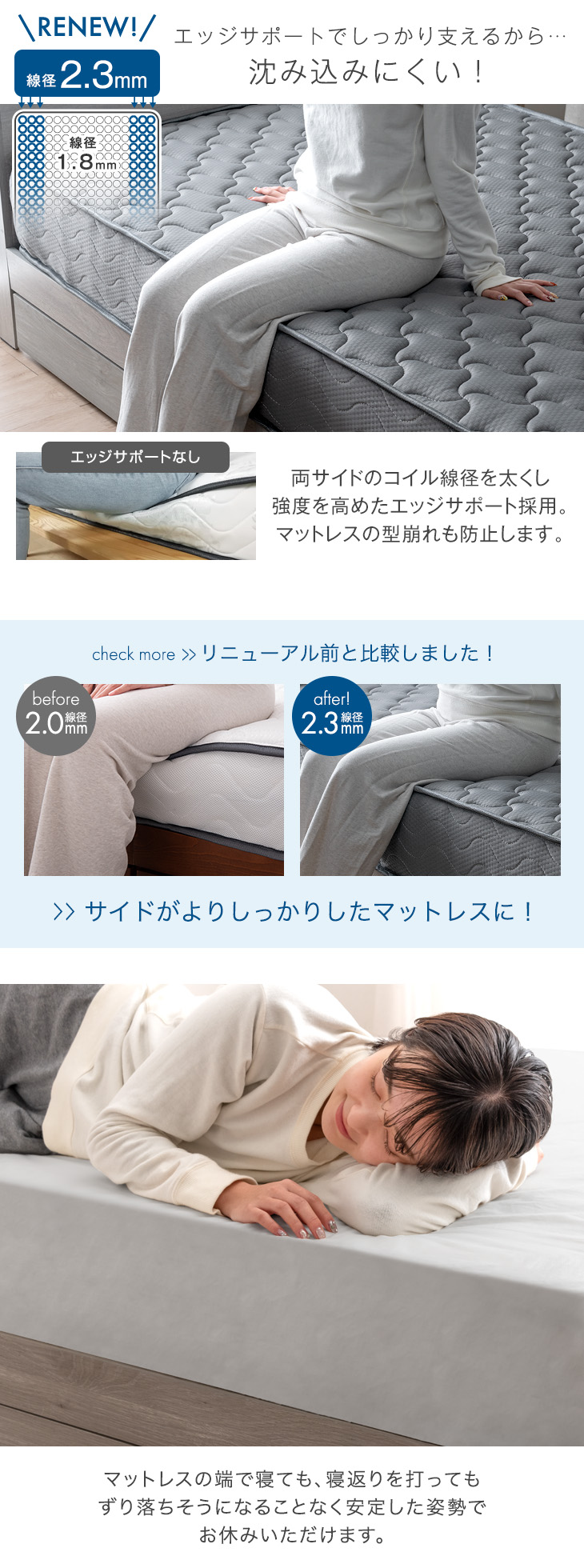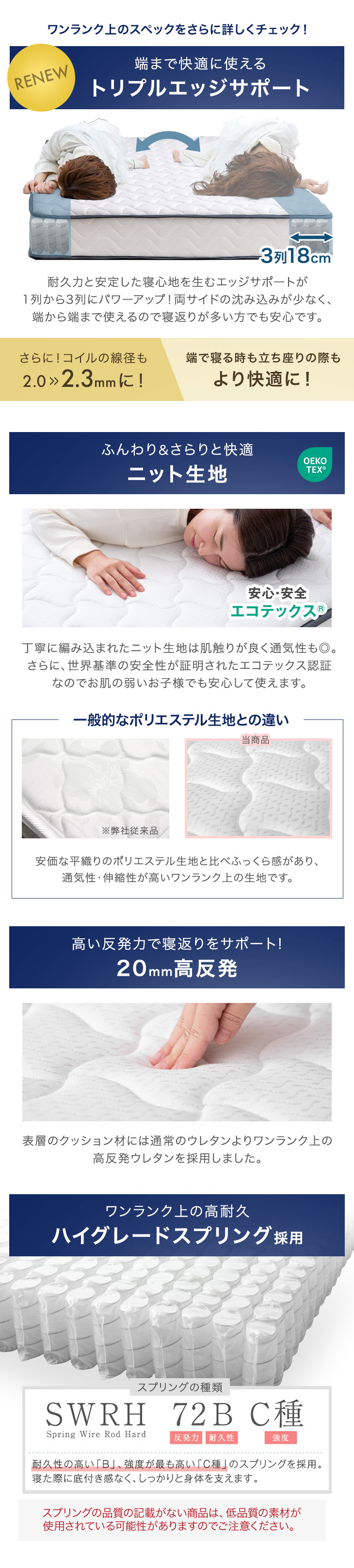 ※マットレスは柔らかい素材で作られてますので、保存期間中の置き方や運搬の仕方、また測り方によって多少サイズに誤差が生じる場合がございます。予めご了承下さい。