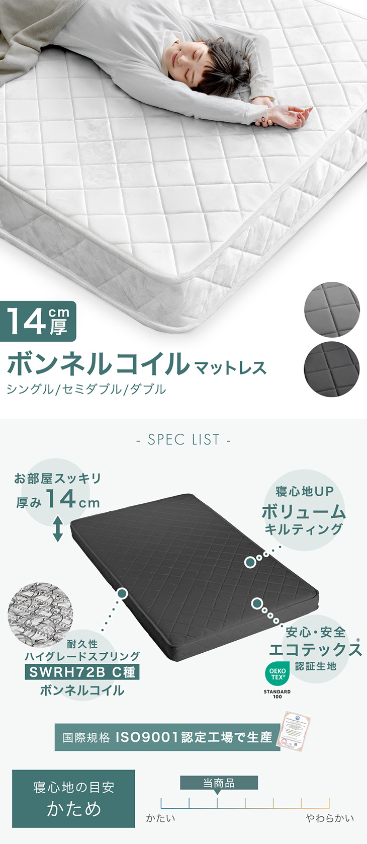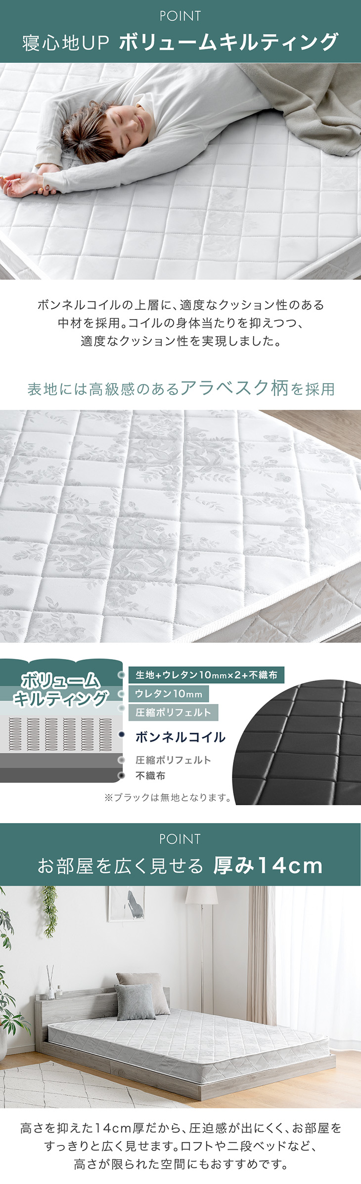 マットレス シングル 厚み14cm ボンネルコイル スプリングマットレス ホワイト 新生活家具