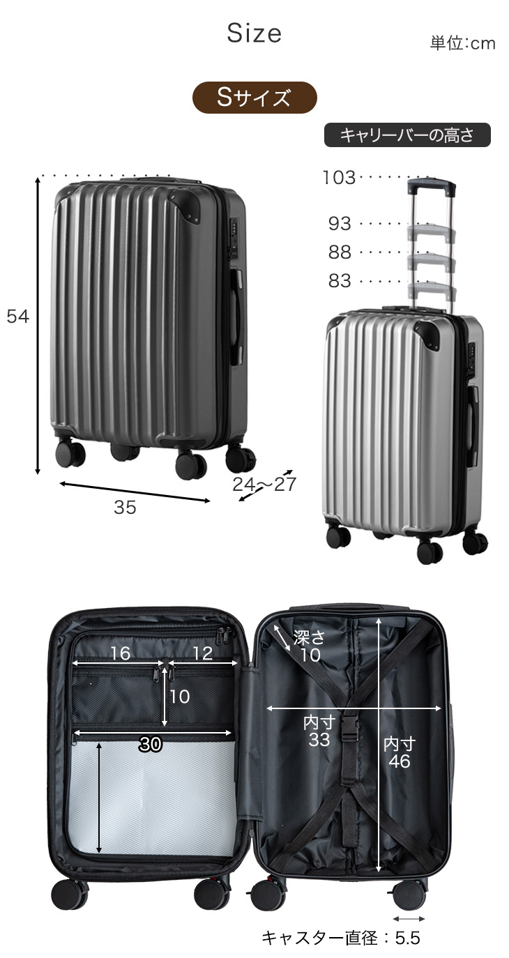 ※2025年1 月29日より、Sサイズ(全色)の側面に取っ手が付き、サスペンションを黒色に変更しております。
