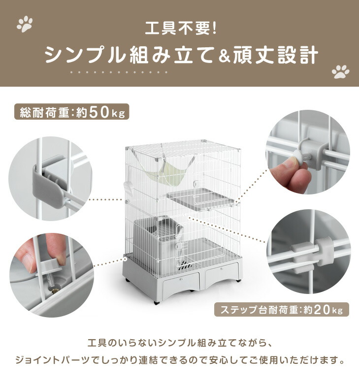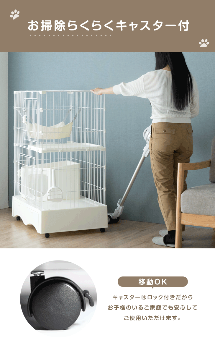 ※破損の原因になりますので、ケージの上に物を置かないでください。