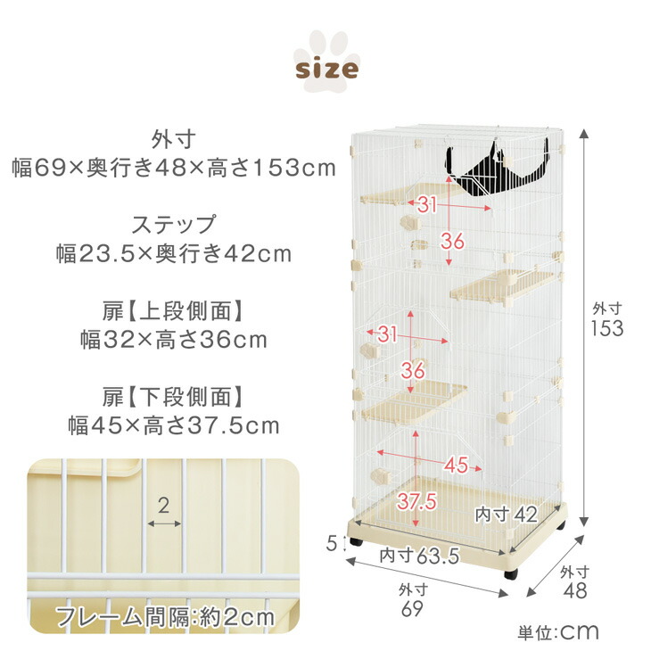 ※破損の原因になりますので、ケージの上に物を置かないでください。