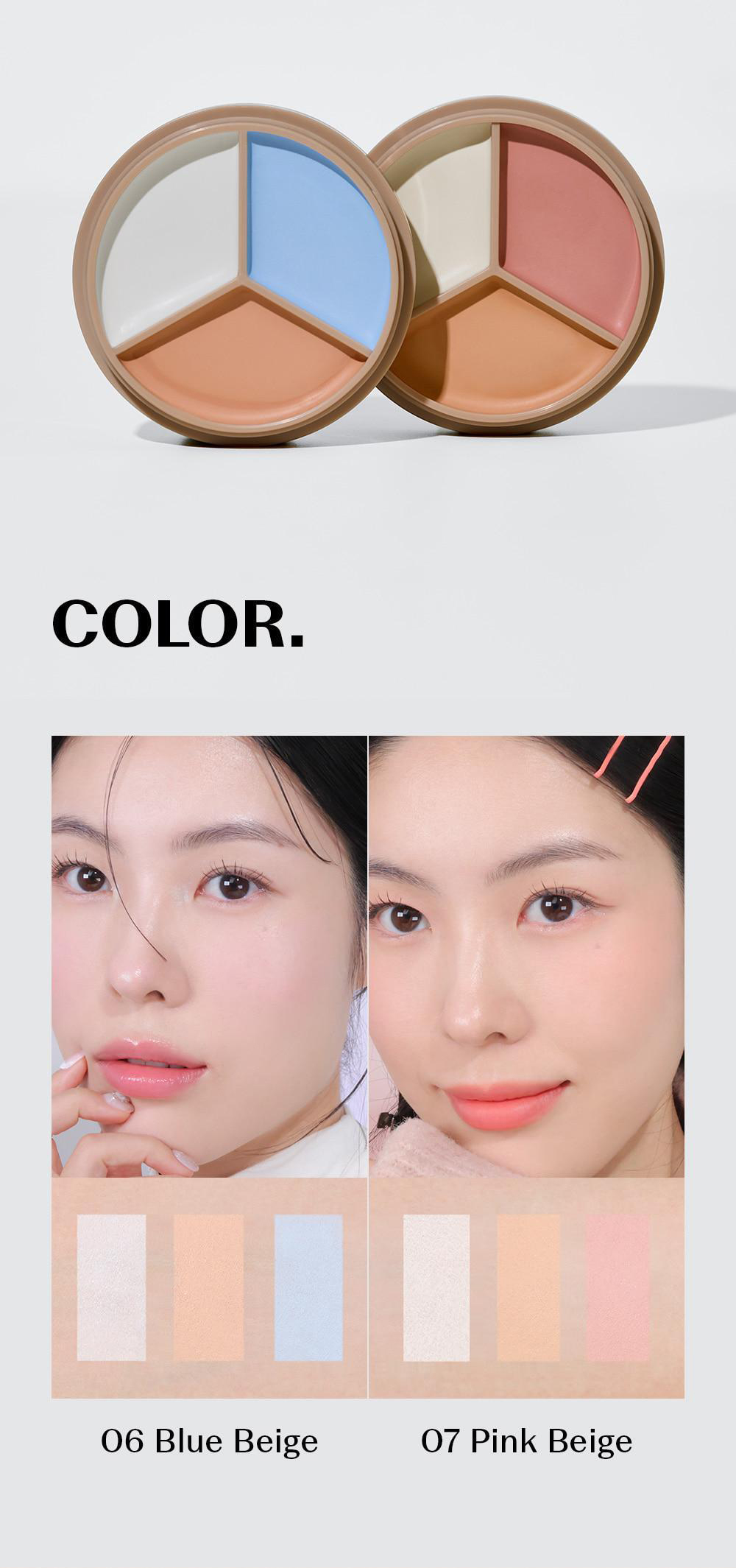 07 ピンクベージュ : 落ち着いて安定感のあるウォームホワイト 顔にロマンチックでやわらかいムードを演出【ウィームホワイト:立体感,トーンアップ】【ソフトベージュ:濃いくすみカバー】【ピンク:ベースチーク、血色付与】