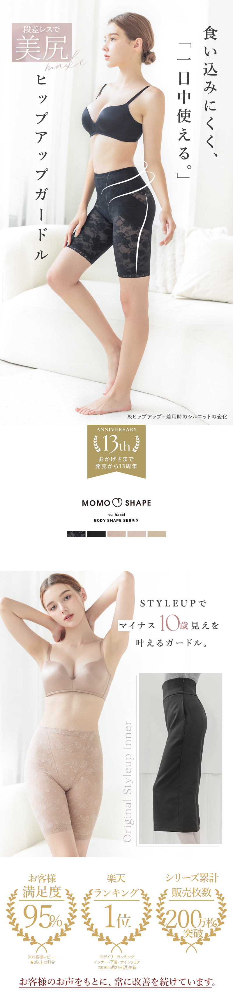 | 『美尻』『補正』など、忙しい女性の毎日を快適にサポート。 産後の体型戻しやエイジングケア、骨盤矯正をしたい方にも最適。 履くだけでお腹〜太ももまでを手軽に補正。 計算されたパワーネットで骨盤全体もしっかりホールド。 伸縮性があるため、体にぴったりフィットし余計なお肉を逃がさずキャッチ。 ぽっこりお腹にお悩みの方もボトムの下に忍ばせるだけでスッキリ着痩せが叶います。 「スタイルアップを叶える」2つのポイント ■習慣化できる着心地 骨盤ケアは毎日続けることが大切。 補正下着は苦しすぎて結局続かない…という方にもオススメ! 長時間着用しても苦しすぎない絶妙な補正力で24時間×365日サポートします。 ※リニューアルにより、ウエスト中央のゴムを無くして食い込みを軽減し、 「しっかり補正×苦しくない着心地」を実現。 ■ふっくら上向きヒップをメイク お尻の下からサイドにかけてパワーネットで引き上げます。 中央部分は弱圧のため、丸みを潰さず高さのあるヒップに。 ※リニューアルにより、ヒップアップ機能が更にUPしました。 ≪本ページのアイテムは『ミドル丈/ロング丈』の『総レースタイプ/スムースタイプ』です≫ 【選べる丈感】 好みに合わせて股上の短いミドル丈と股上の長いロング丈からお選びいただけます。 ・ミドル丈 スッキリと股上の短いミドル丈は、短くても骨盤周りをしっかりサポート! ウエストの締め付けが苦手な方におすすめです。 ・ロング丈 お腹をすっぽり包むハイウエストのロング丈は、ウエスト周りの贅肉が気になる方におすすめです。 【選べるデザイン】 通気性に優れ強度のあるフラワー柄レースを使用した「総レースタイプ」と、 ボトムスにラインが響きにくい「スムースタイプ」の2タイプのデザインをご用意。 カラーは「ブラック」「ヌードベージュ」「スキンベージュ」の3種類からお選びいただけます。 ※ベージュの色味を肌の色に馴染んでより透けにくい"血色カラー"に変更。 「スキンベージュ」はスムースタイプのみです。 | |