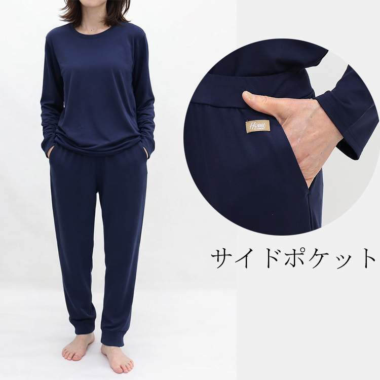 おやすみ前のくつろぎ時間から朝まで心地よく過ごせるリラックスルームウエア上下セットです。