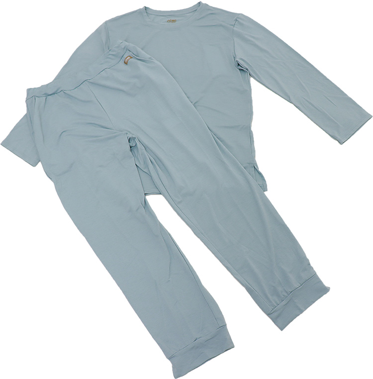 長袖Tシャツ(ロンt)とロングパンツのうすでのセットで春夏にぴったりの軽やかな着心地。