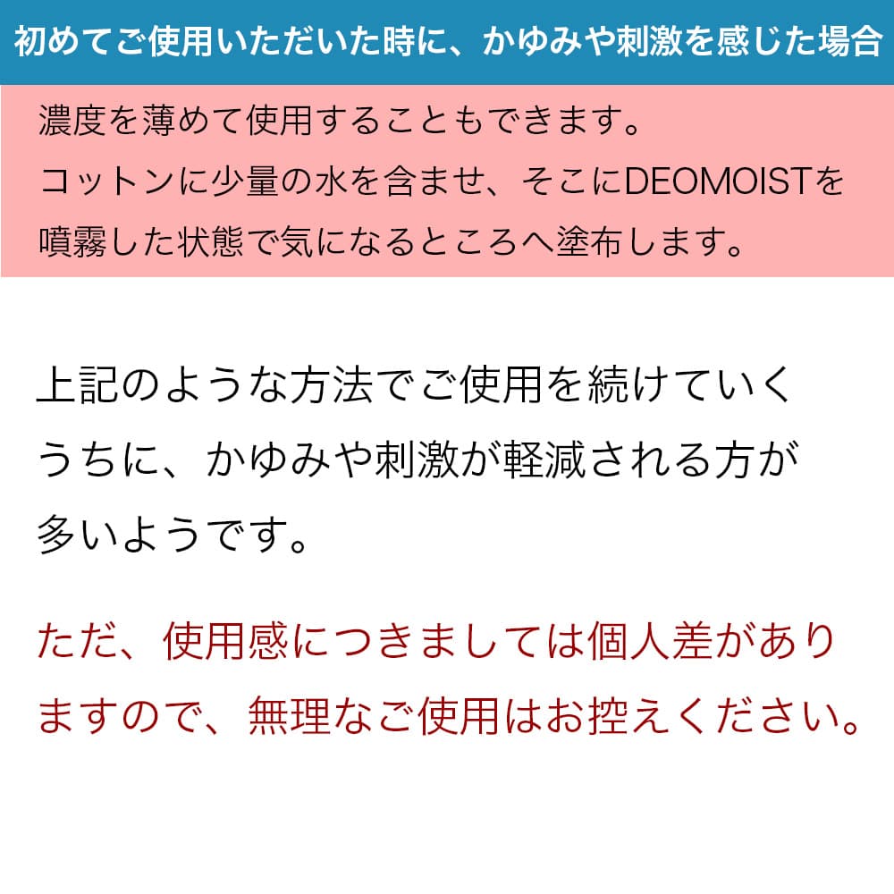 ●かゆみ等が生じた場合は拭き取るか、洗い流してください。
