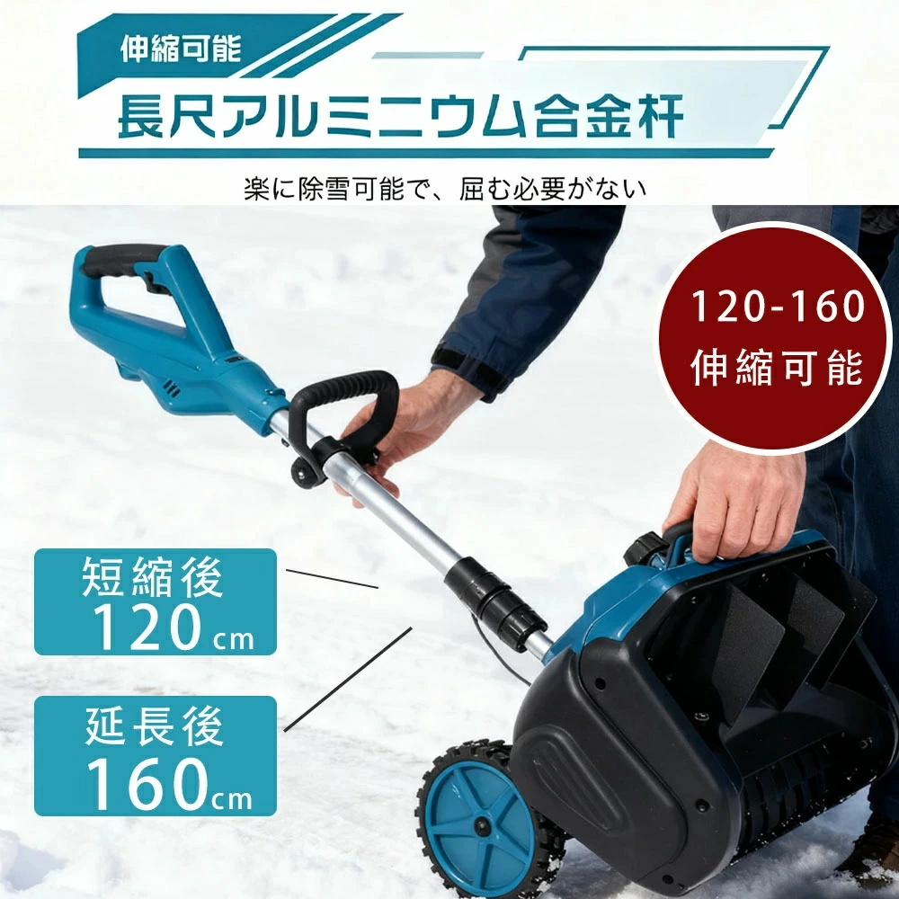 この電動除雪機は高品質なABSシェルとアルミニウム合金のプッシュロッドを採用し、耐久性と軽量性を両立しています。強力なブラシレスモーター回転数は最大32000 rpmで、雪の日でも様々な積雪問題に簡単に対処でき、楽に除雪を行い、冬の楽しみを存分に味わえます。