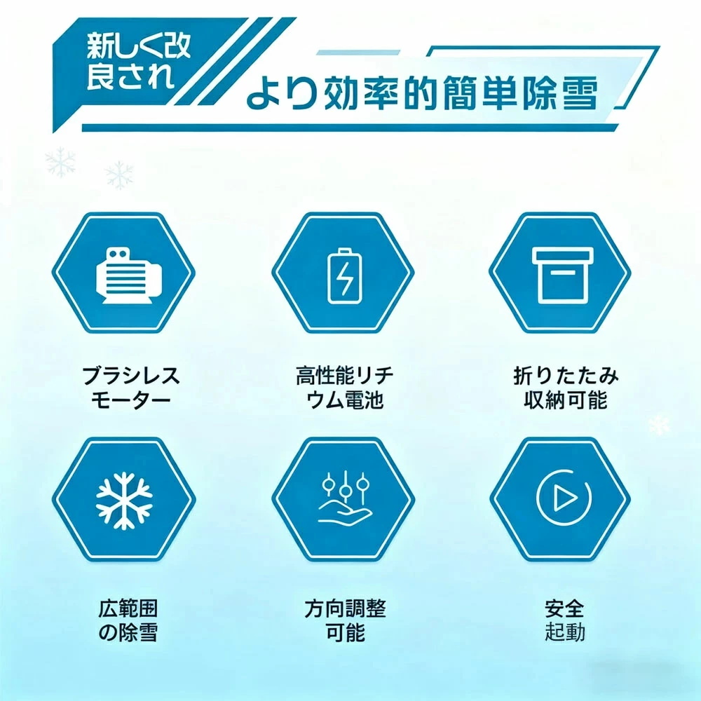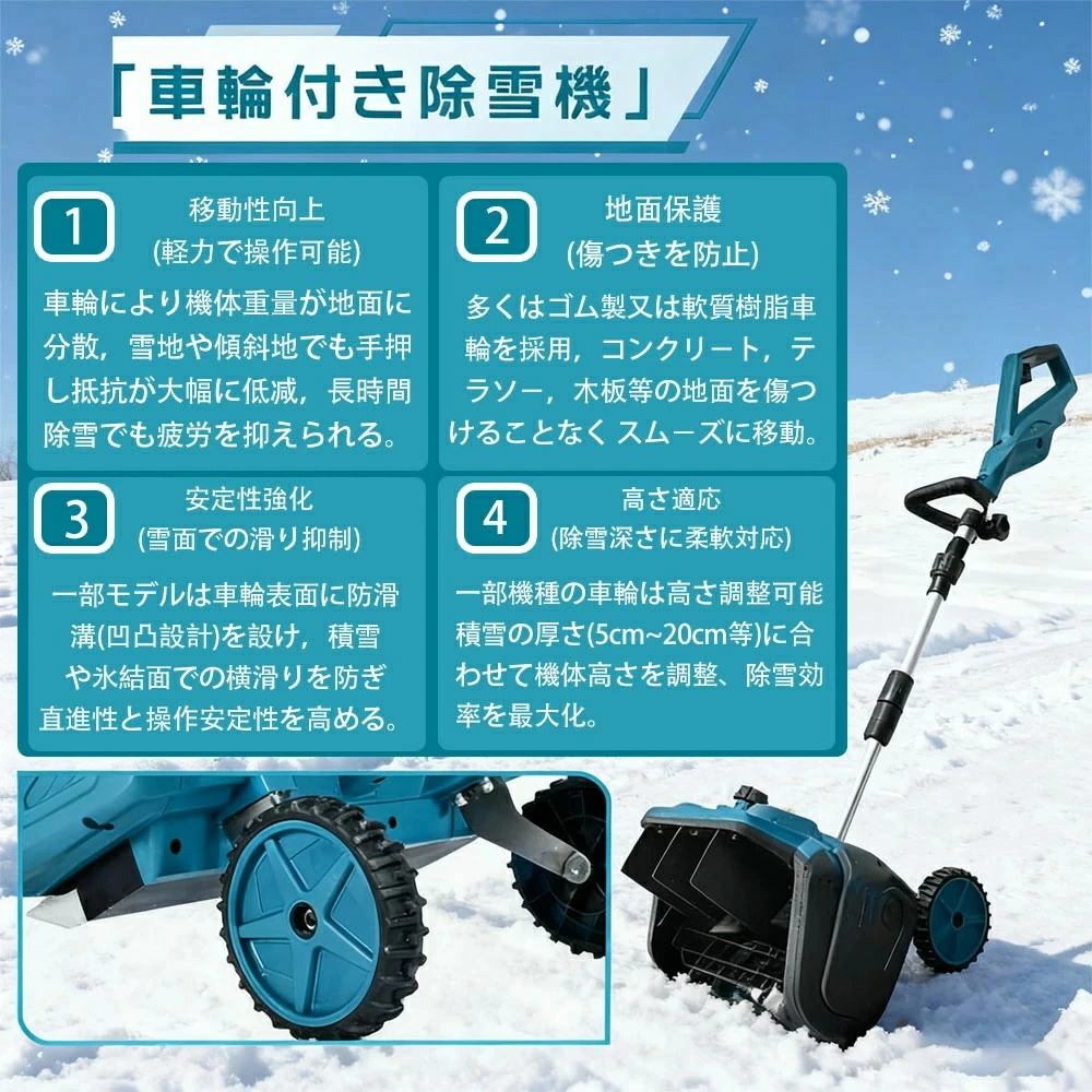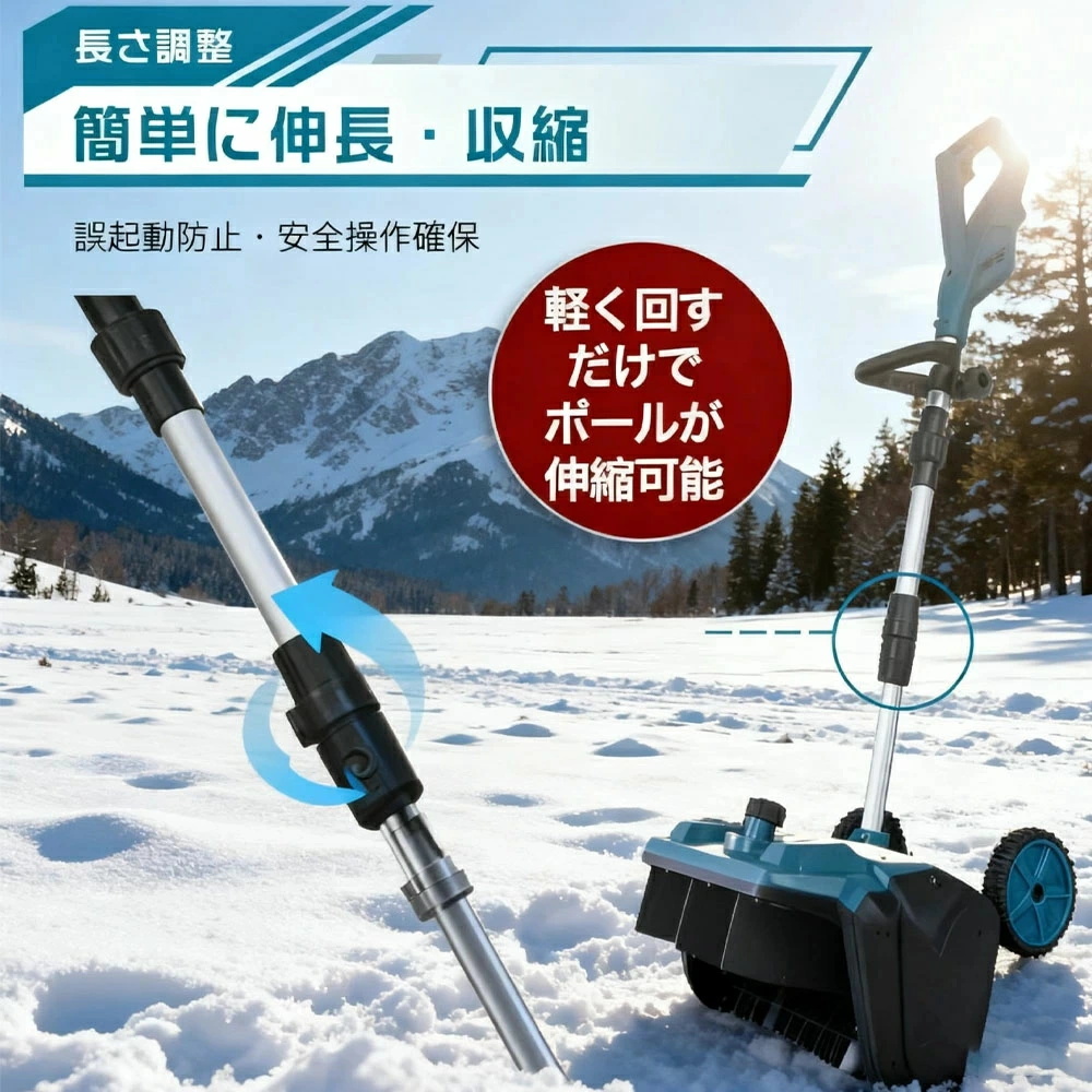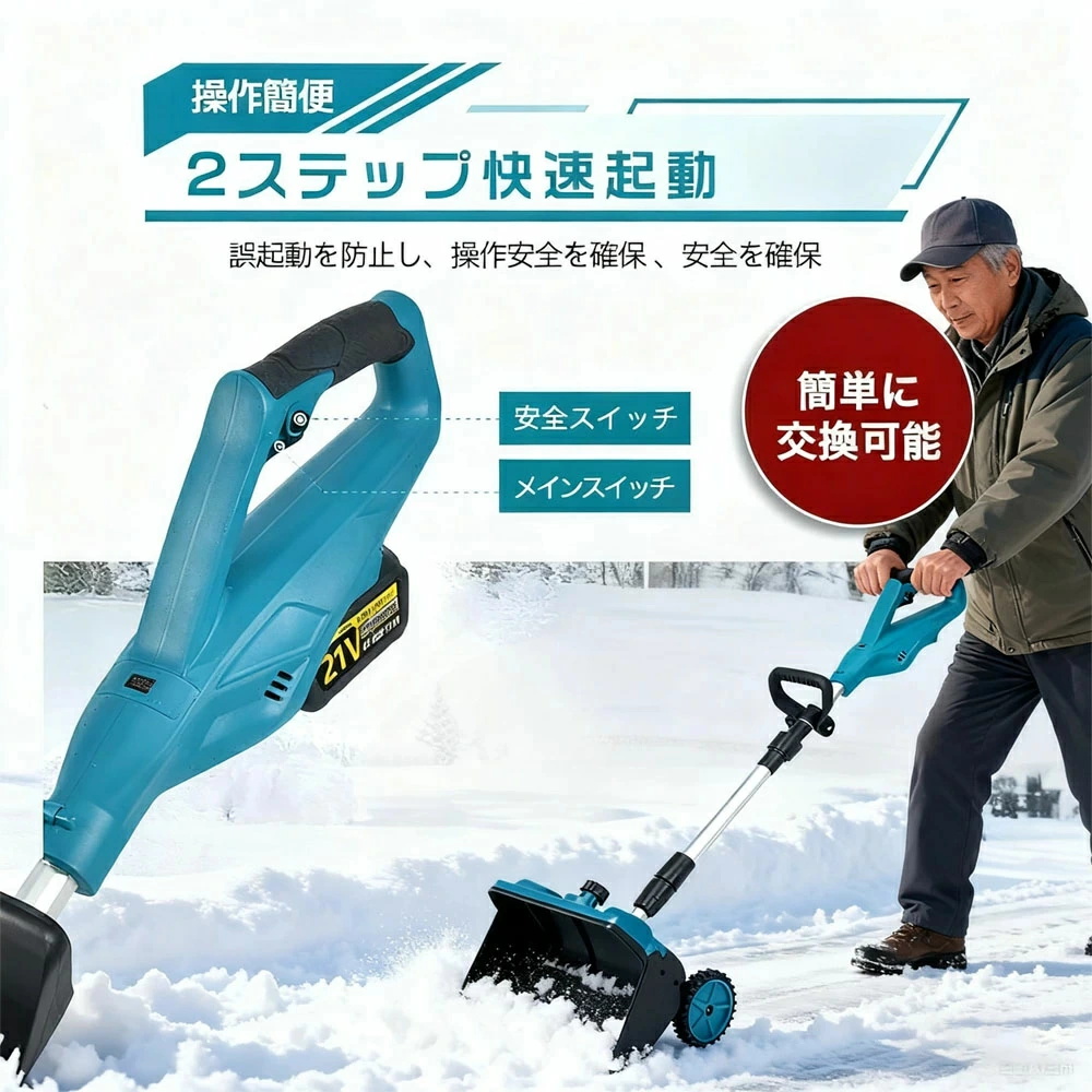 吹雪の多い北海道でも、除雪スコップ なら簡単に除雪できる。高性能な電動除雪機は、強力な電気駆動システムを搭載しており、広範囲の雪を迅速かつ効果的に除雪できます。電動モーターにより、幅33cm x 深19cmの道を提供します。最大投げ距離8mで、作業を迅速、効率的かつ簡単に行えます。車道や歩道などの除雪を素早く行い、私道、歩道、小さな屋外エリアに最適で安全な通行を確保します。